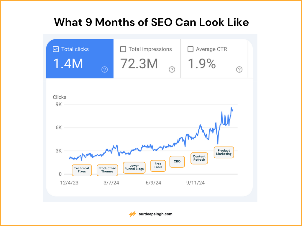 → Compounding phase: by month 6-9+ SEO keeps compounding while we plan for the best areas of scaling investment.